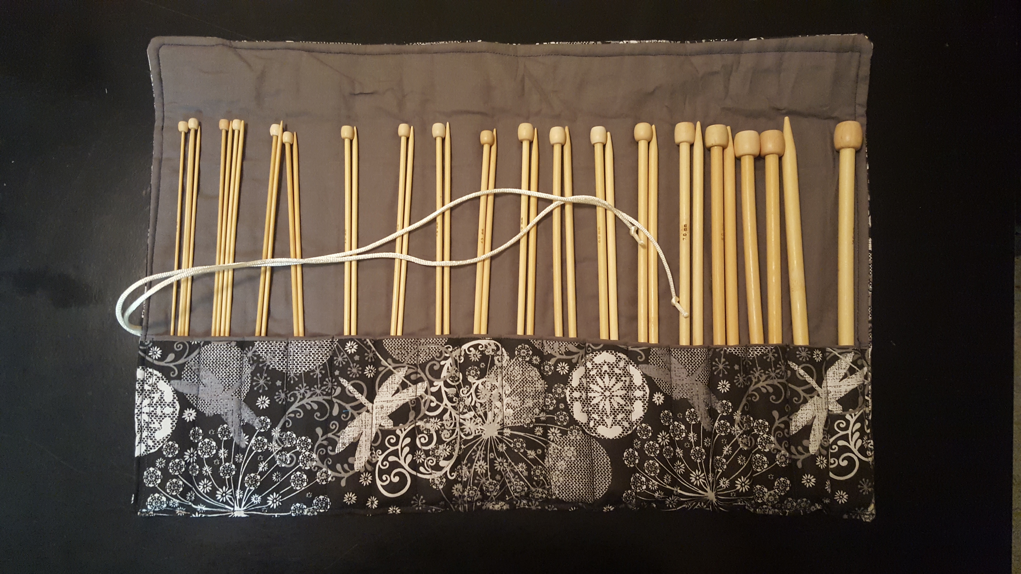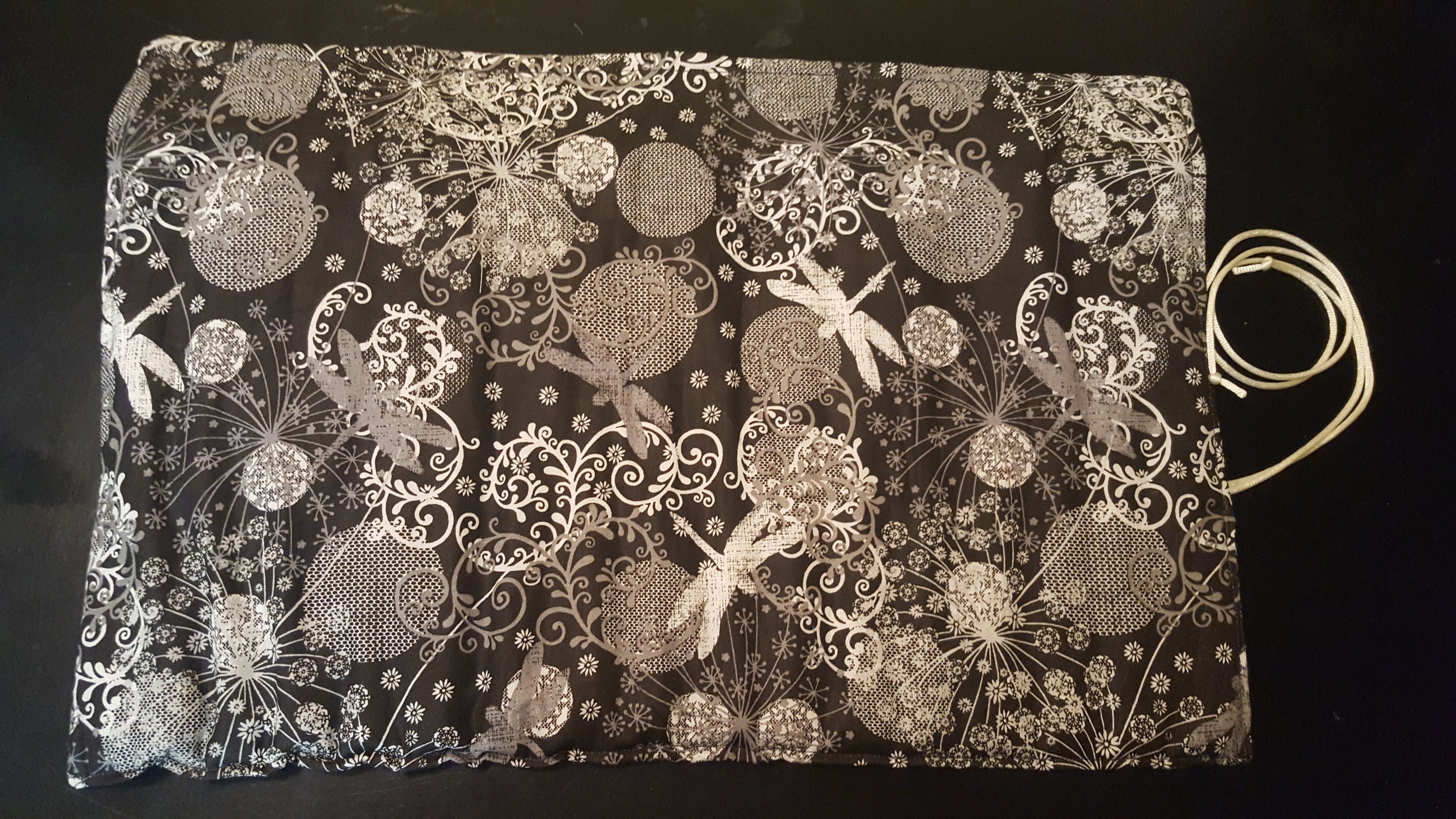 This large art roll is suitable for long implements such as knitting needles, paint brushes and art pencils. It measures approx 19" long and 13" tall with a 4.5" pocket and satin ties to keep your roll secure!