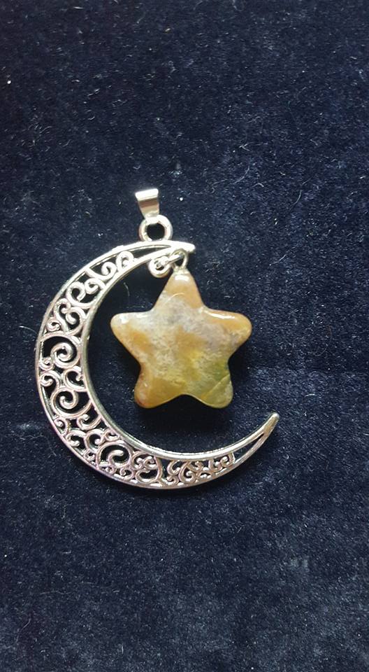 Sterling Silver crescent moon with an Orange Quartz star pendant. ***PENDANT ONLY!***